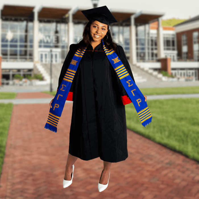 Your graduation photos capture a moment that lasts a lifetime. To make your photos even more memorable, consider styling your Sigma Gamma Rho Graduation Stole with care. Drape it over your shoulders in a way that showcases the intricate Kente patterns and bold ΣΓΡ letters. This will not only enhance your outfit but also highlight your cultural pride.