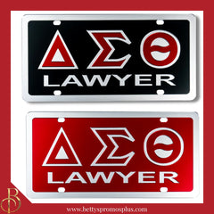 Show off your Delta Sigma Theta pride with our sleek, laser-engraved Lawyer Metal Acrylic Mirror License Plate Frame. Designed for both style and durability, our Delta Sigma Theta Lawyer tag frame is perfect for members who want to make a statement on the road. Choose between a silver top with a red bottom or a red top with a silver bottom—both options feature the iconic ΔΣΘ at the top and "Lawyer" at the bottom.