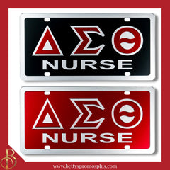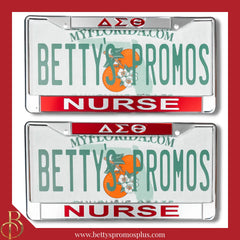 Show off your Delta Sigma Theta pride with our exclusive ΔΣΘ Nurse Metal Acrylic Mirror Laser Engraved Auto Tag License Plate Frame. This stylish auto tag combines function and flair, making it a must-have for every member of Delta Sigma Theta Sorority, Inc. Our Delta Sigma Theta Nurse license plate frame comes in two eye-catching color options: silver top with a red bottom or red top with a silver bottom, perfectly showcasing the ΔΣΘ emblem at the top and "Nurse" at the bottom.