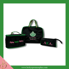 The Sigma Gamma Rho ΣΓΡ Toiletry Bag Set is a convenient and stylish makeup travel kit designed to help you stay organized during your journeys. This set includes three separate bags that are perfect for storing your toiletries, makeup, and other essentials.
